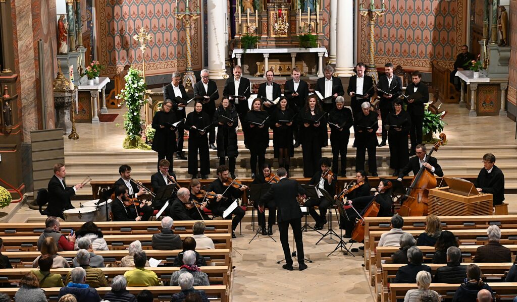 Prof. Helmut Binder begeisterte zu Beginn mit Orgelwerken von Josef Gabriel Rheinberger, im Anschluss daran erklang Joseph Haydns meisterhaft komponierte Missa in Angustiis (Nelsonmesse) für Soli, Chor & Orchester.
